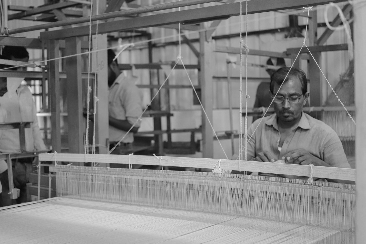 L’atmosphère du studio, cadencée par le rythme des métiers à tisser ou le chuchotement des navettes, et nourrit du parfum des fibres naturelles, convoque les sens et perpétue l’histoire du tissage artisanal.